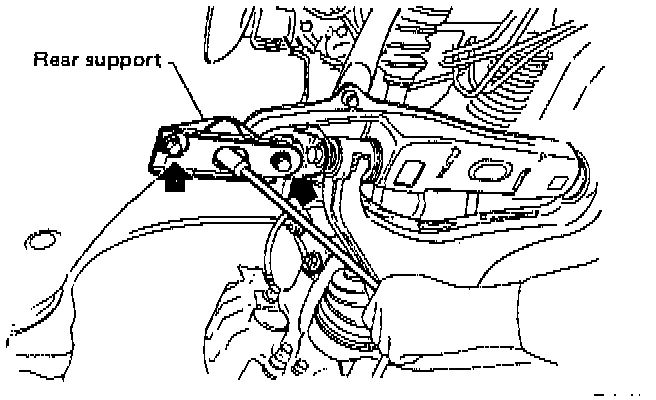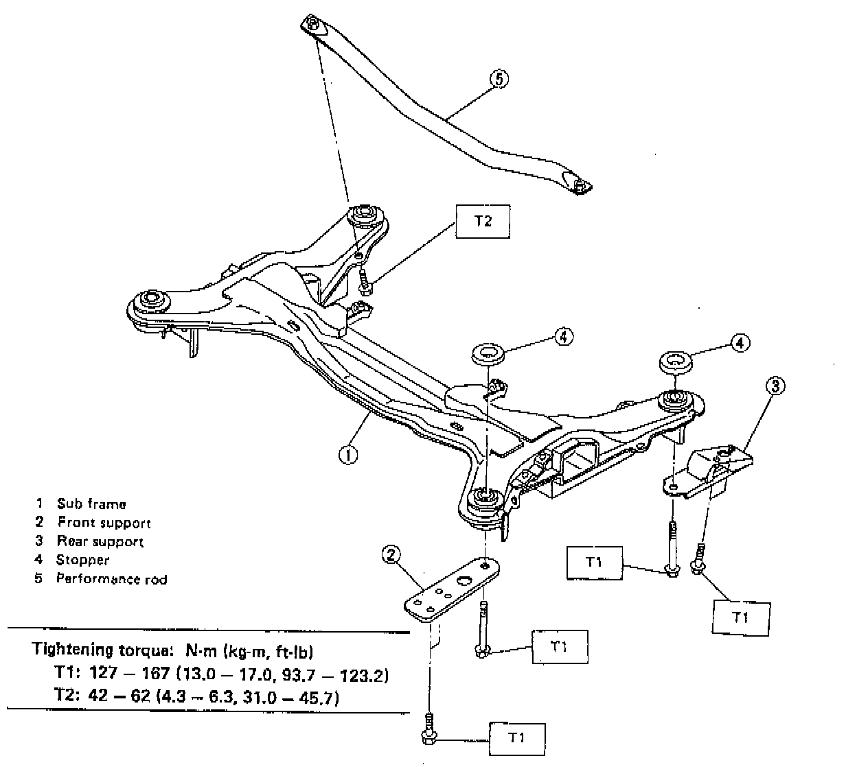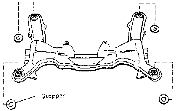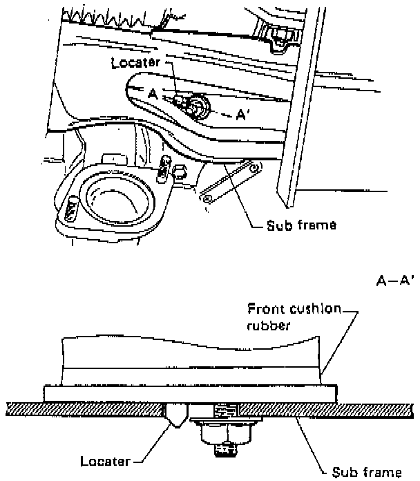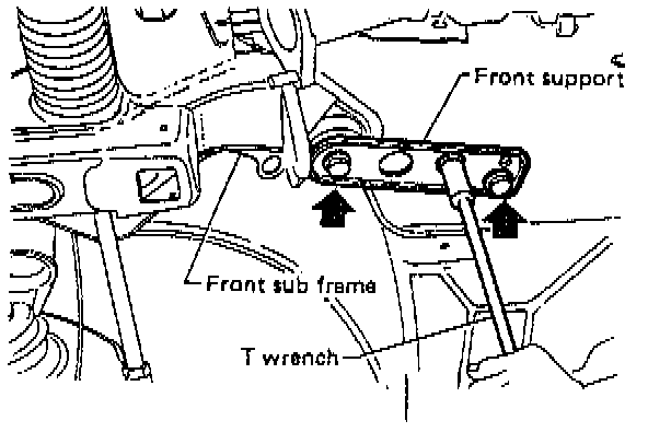 f. When tightening lower arm-to-sub frame securing bolts, make sure vehicle weight is on suspension.