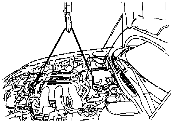 8. Carefully lift engine. Be sure to lift engine just enough to unload sub frame.