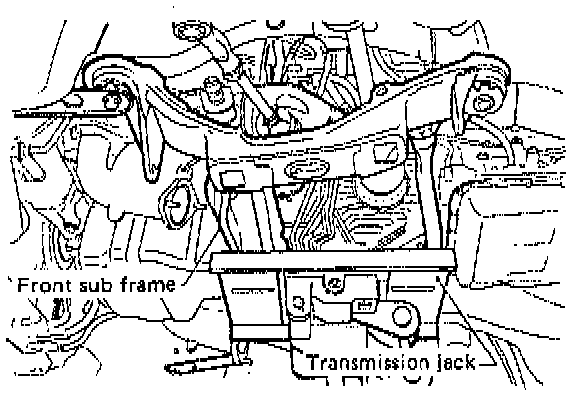 25. Remove sub frame. Be careful not to damage power steering solenoid harness.