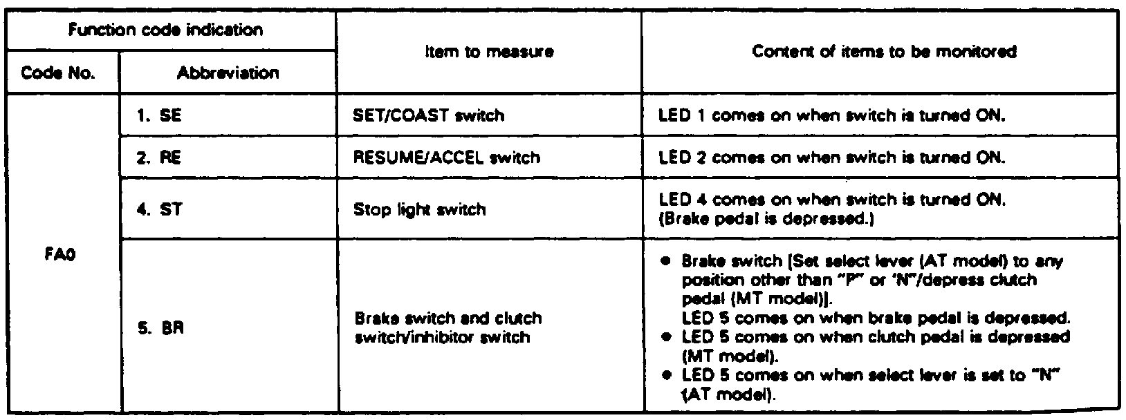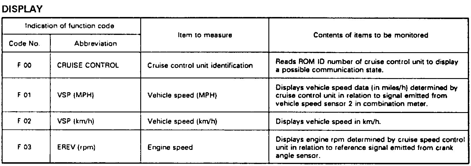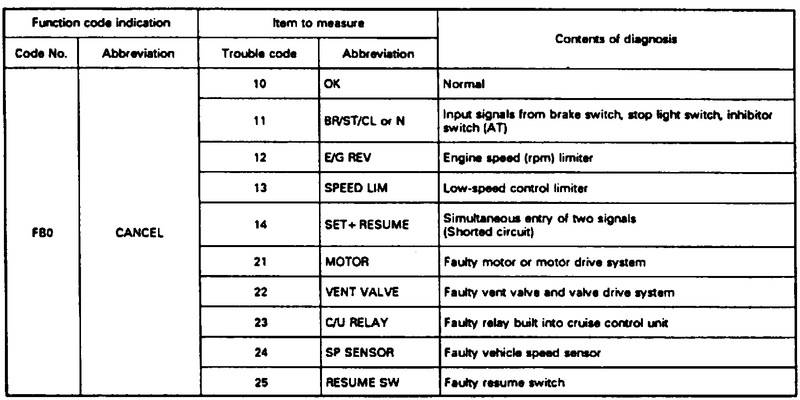 4. If cruise speed is cancelled itself (without doing any cancel operations), a trouble code will appear on select monitor display.