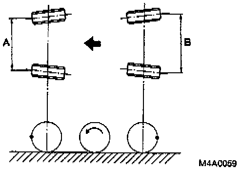 4. Measure distance "A" between left and right marks. Toe-in can then be obtained by the following equation: B - A = Toe-in.