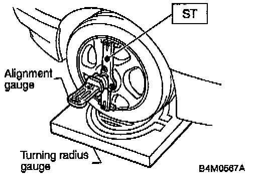 2. Set ST into the center of the wheel, and then install the wheel alignment gauge.
