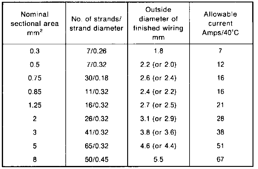 The table in the image lists the nominal sectional areas and allowable currents of the wires.Allowable Current Level Of The Wires: