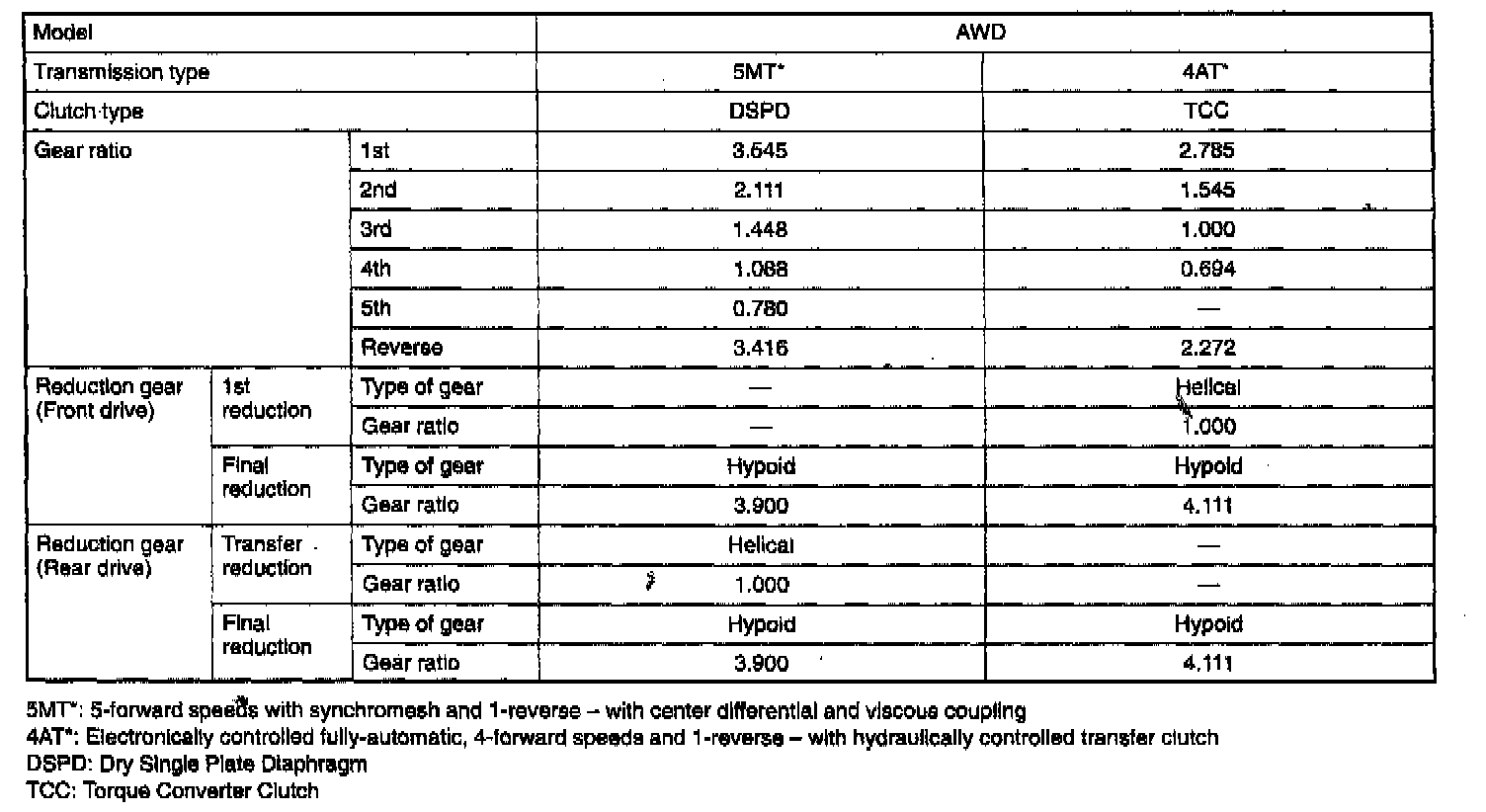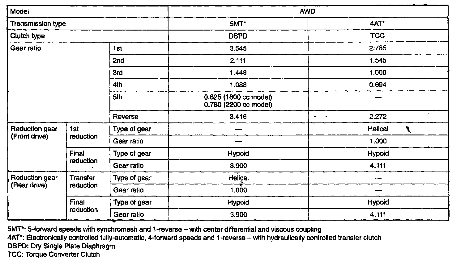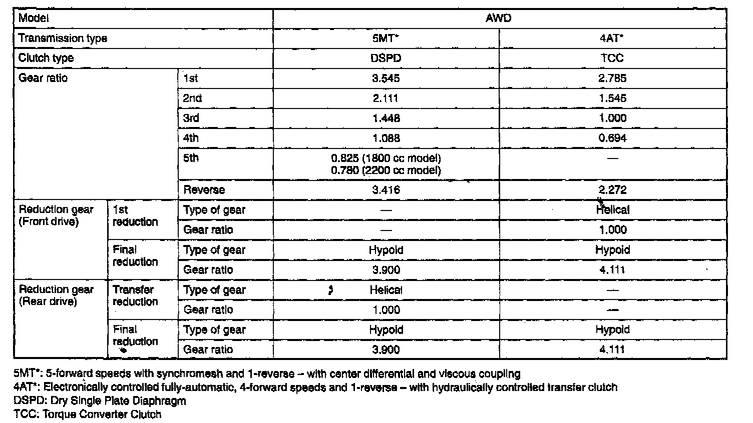 5-spd M/T/4-spd A/T, Transmission/Differential Gear Ratios (Sport Wgn):