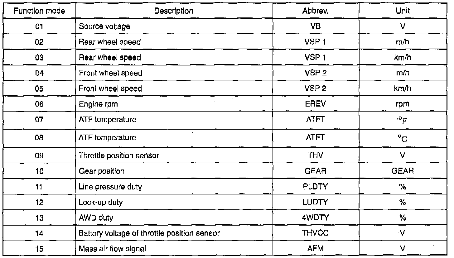 Various data and ON/OFF signals being processed in the TCM can be monitored by connecting the select monitor to the select monitor terminal located under the instrument panel. The trouble codes of the present and past problems can be indicated using a particular code.