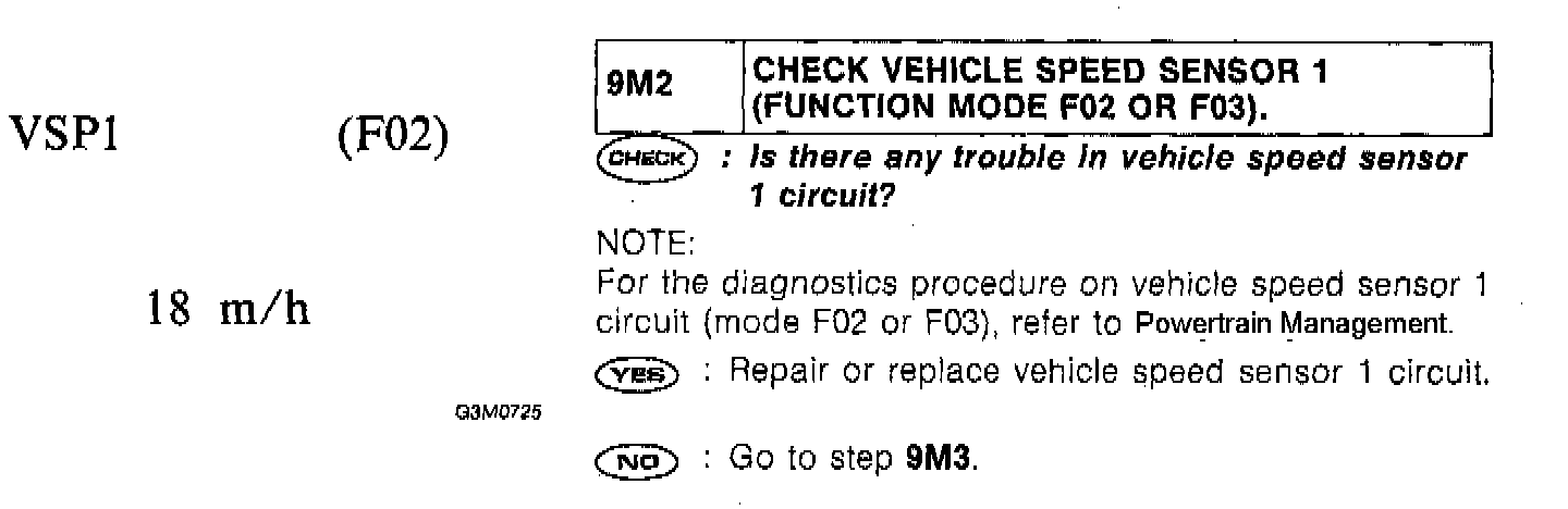 9M2 - Check Vehicle Speed Sensor 1 (Function Mode F02 or F03)