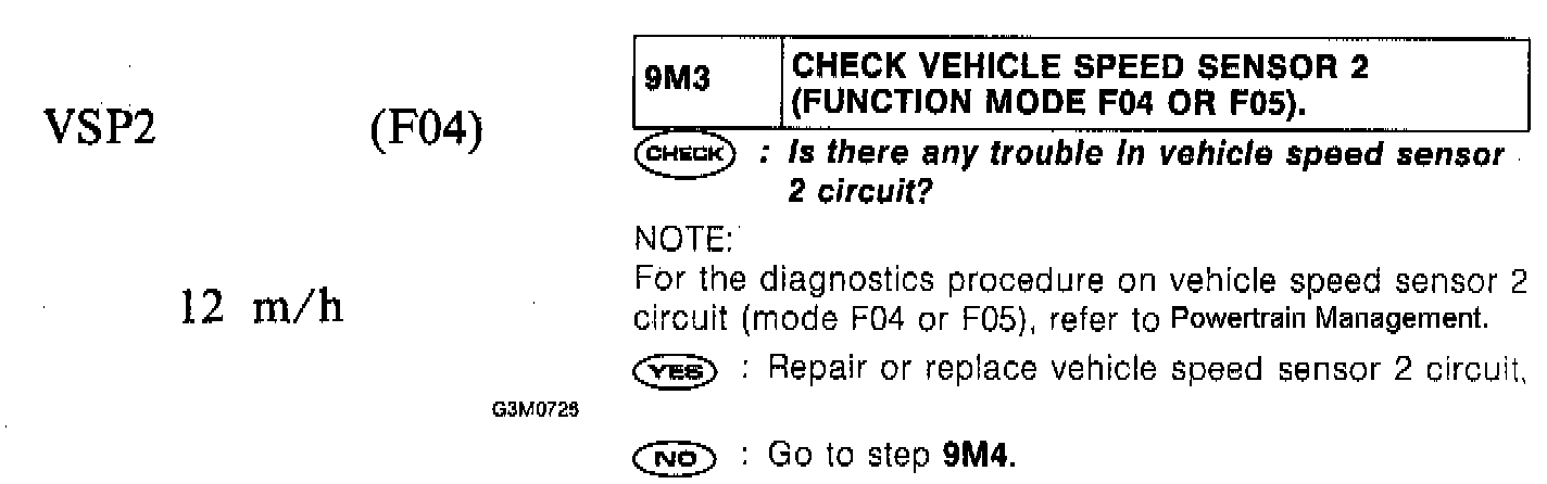 9M3 - Check Vehicle Speed Sensor 2 (Function Mode F04 or F05)