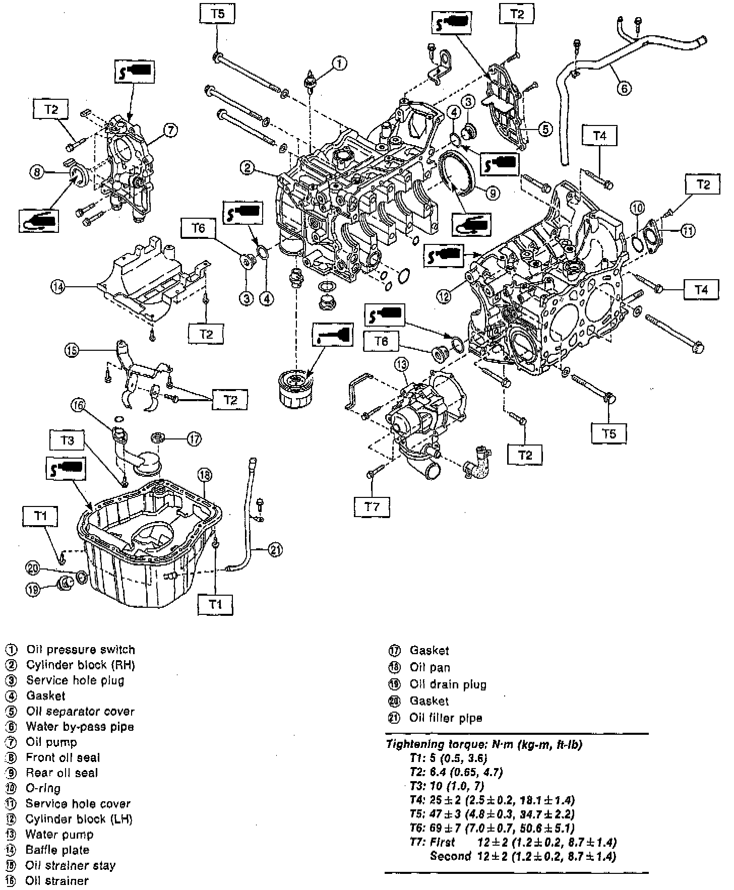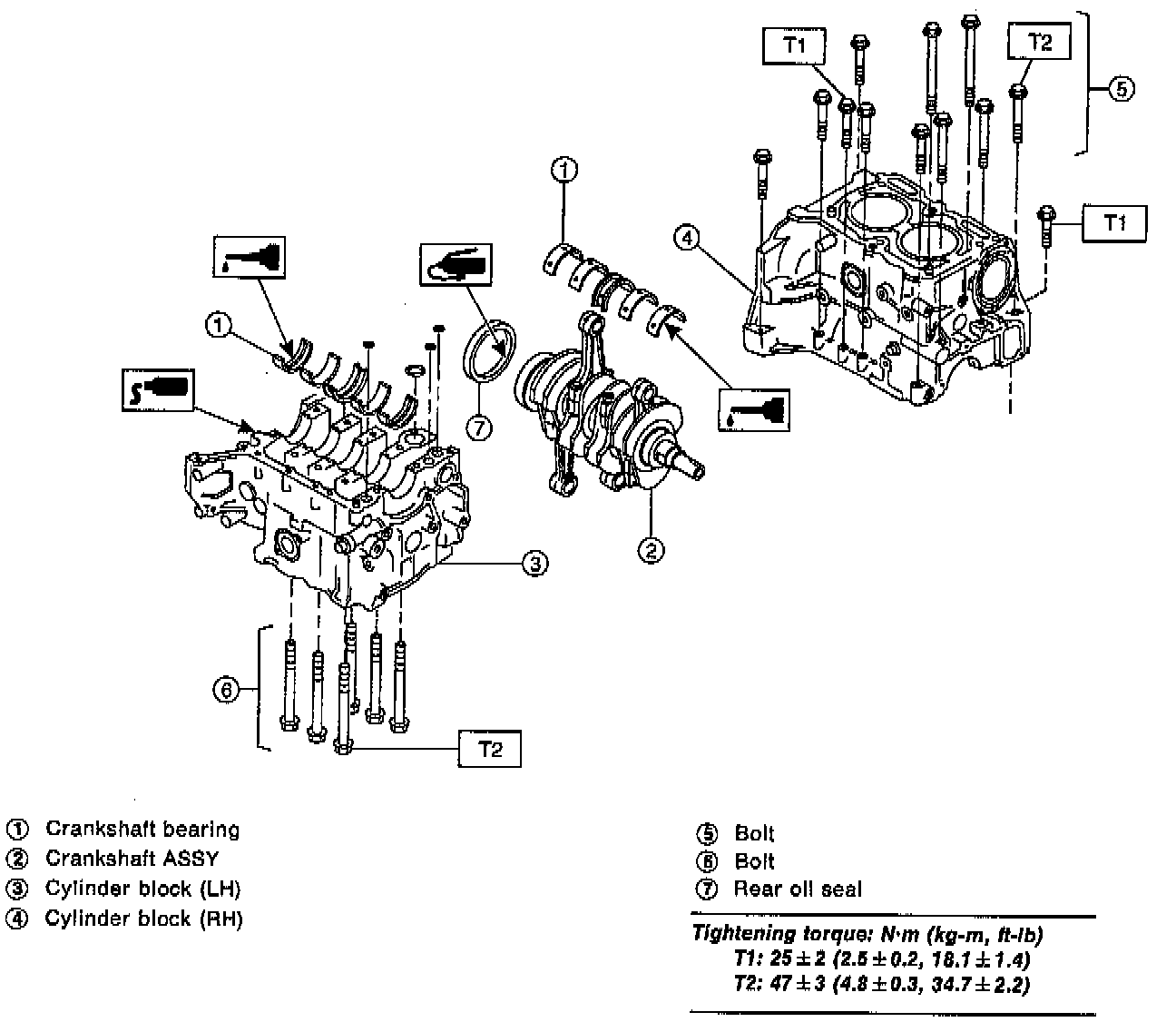 Bolts (1) - (7): 25 ± 2 Nm(2.5 ± 0.2 kg-m, 18.1 ± 1.4 ft. lbs)