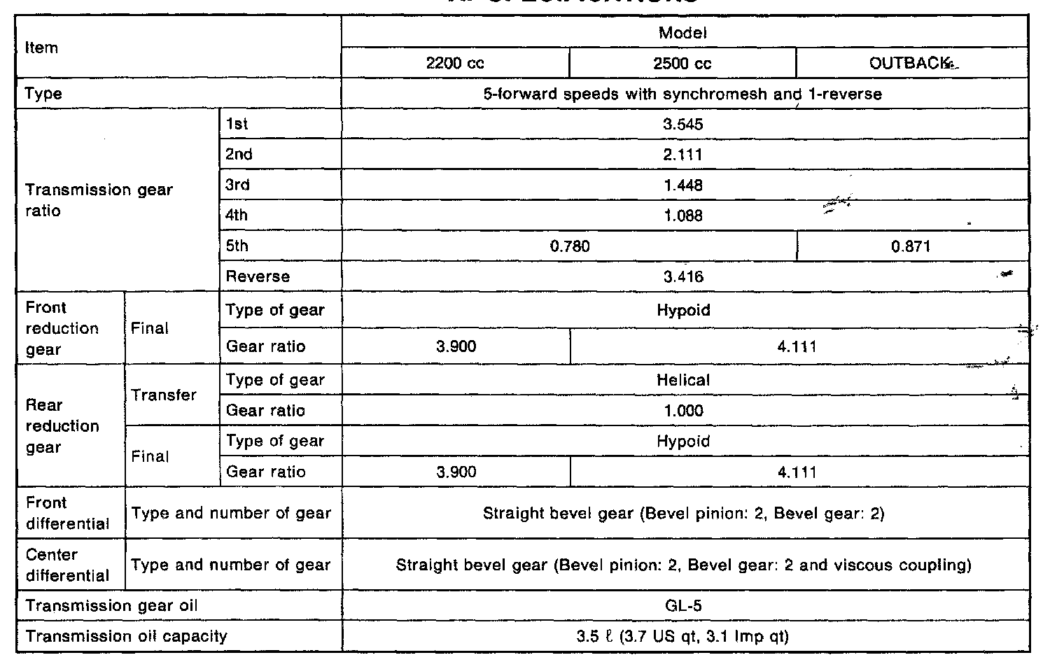 5-spd M/T, Transmission/Differential Gear Ratios: