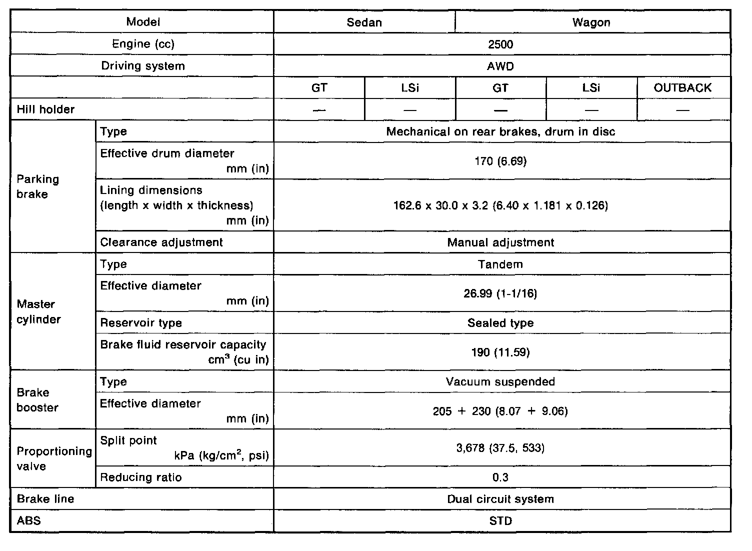 Outback [Legacy] AWD F4-2.5L DOHC