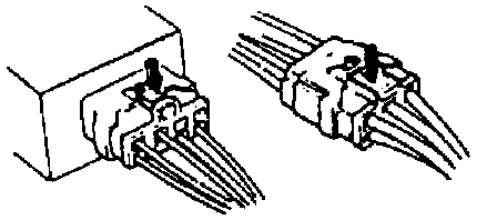 To disconnect a locking connector, first re-lease the lock, then pull the connector off. Unlock by pulling the locking tab.