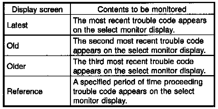 - Data stored at the time of trouble occurrence is shown on display.