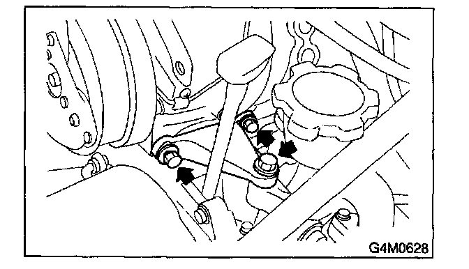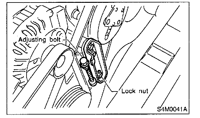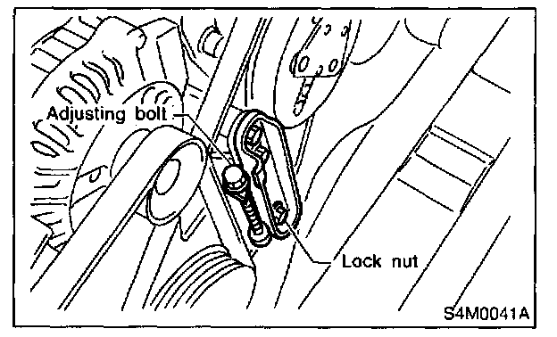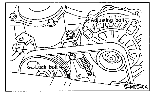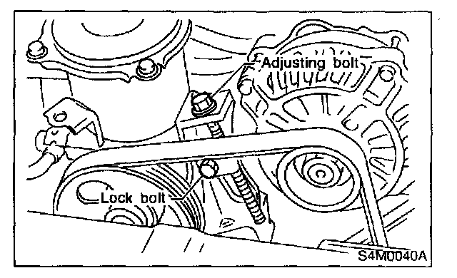 After adjusting V-belt tension, tighten alternator bracket lock bolt securely.