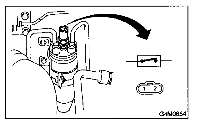 2. Disconnect pressure switch harness connector, and check pressure switch for proper ON-OFF operation. Use a circuit tester.