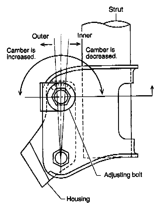 b. Turn camber adjusting bolt so that camber is set at the specification.