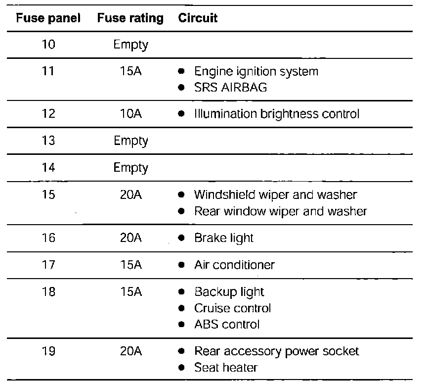 Fuse Panel Details
