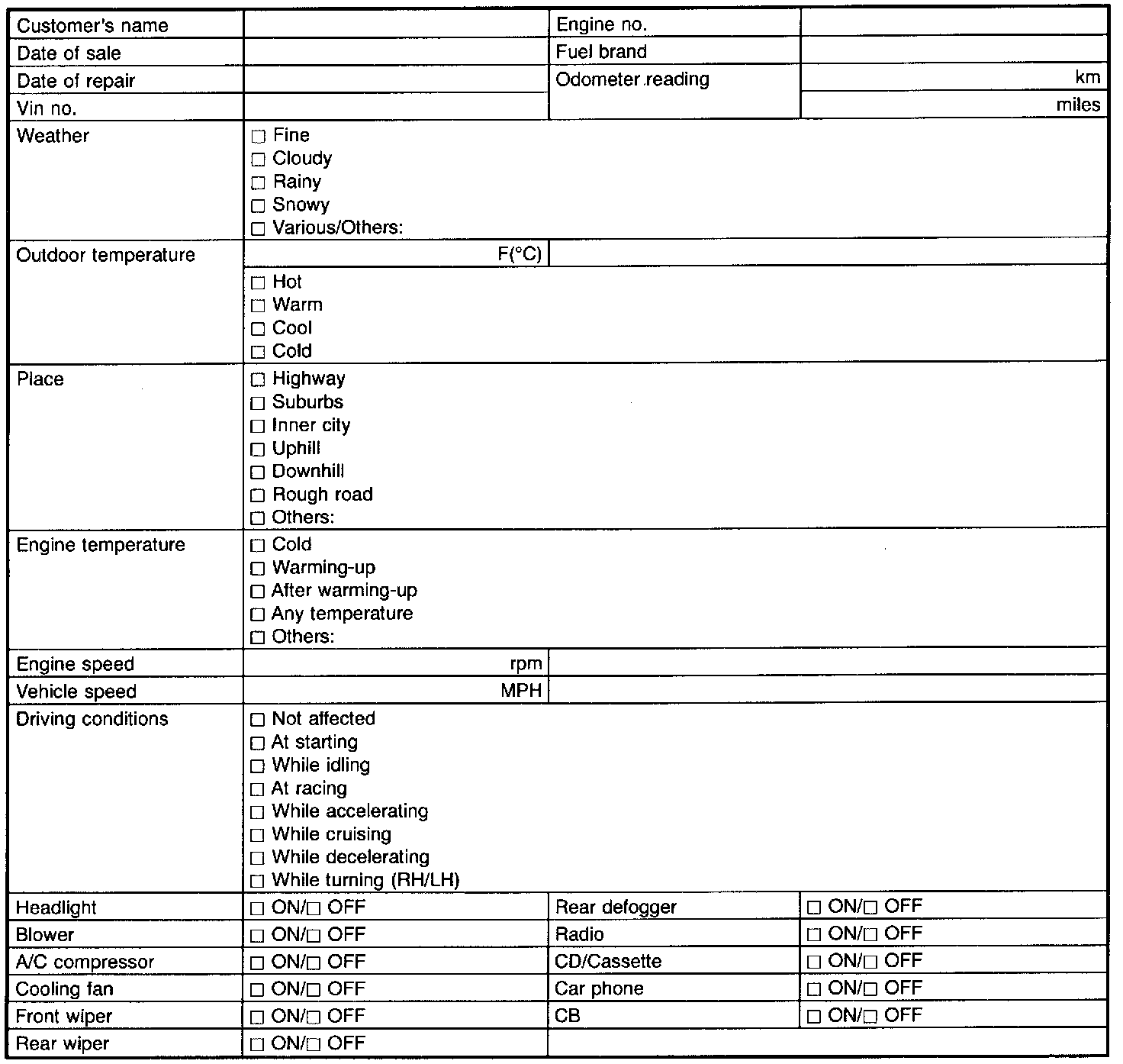 Check these items when the MIL turns on.