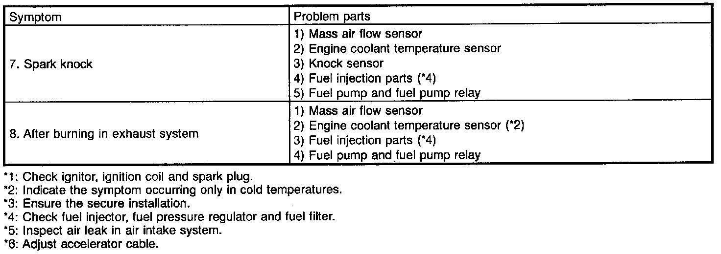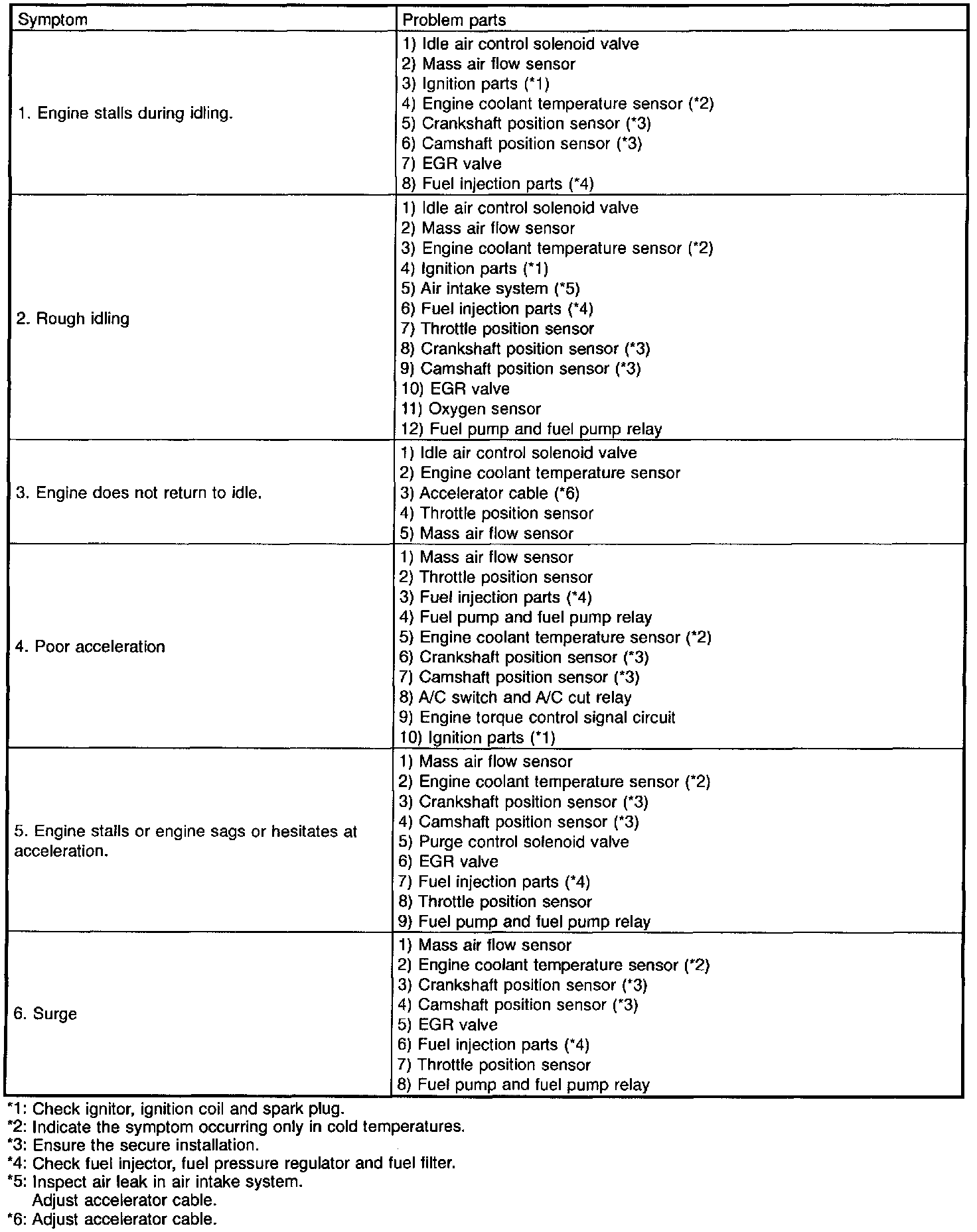 GENERAL DIAGNOSTICS TABLE WITH NON-CONFORMITY SYMPTOM FOR ENGINE