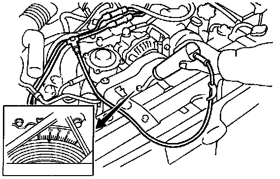 2) To check the ignition timing, connect a timing light to #1 cylinder spark plug cord, and illuminate the timing mark with the timing light.