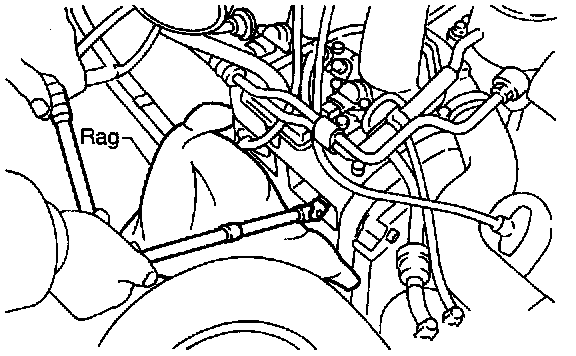 CAUTION: When removing spark plug, cover the ATF cooling pipes with a rag to prevent damage.
