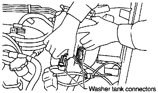 CAUTION: Do not disconnect washer tank hoses as washer fluid will leak out from washer tank.