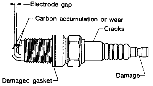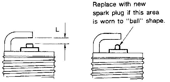 If deposits are too stubborn, discard plugs. After cleaning spark plugs, recondition tiring surface of electrodes with file. Then correct the spark plug gap using a gap gauge.