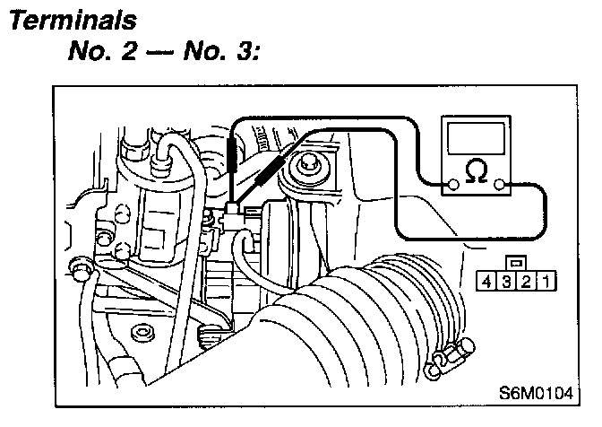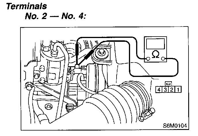 Connect + (positive) battery cable to terminal No. 2 and - (negative) battery cable to terminals No.1 and 4 of actuator connector.