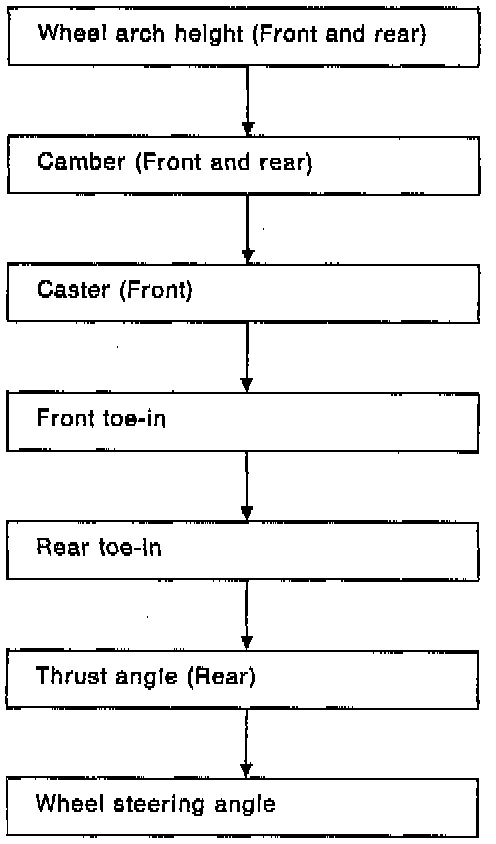 Check, adjust and/or measure wheel alignment in accordance with procedures indicated in figure.