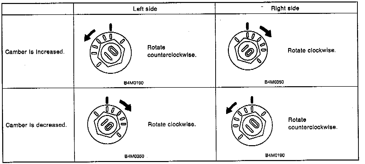 b. When one rear wheel is adjusted in a toe-in direction, adjust the other rear wheel equally in toe-out direction, in order to make thrust angle adjustment.