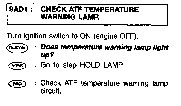 AD: CHECK ATF TEMPERATURE WARNING LAMP.