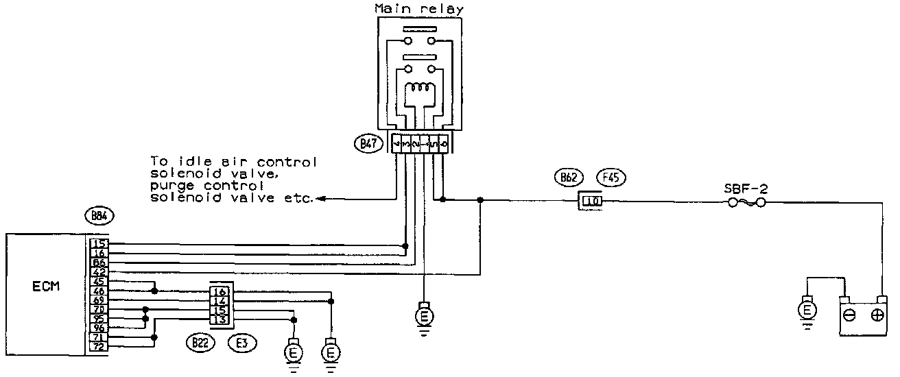 c. Connect Battery to Main Relay terminals No. 1 and No. 2.