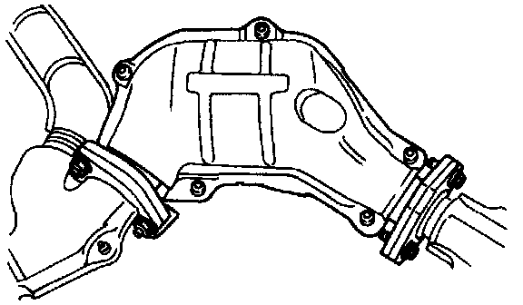 1. Install center exhaust pipe and rear catalytic converter assembly. Temporarily tighten bolt which installs center exhaust pipe to hanger bracket.