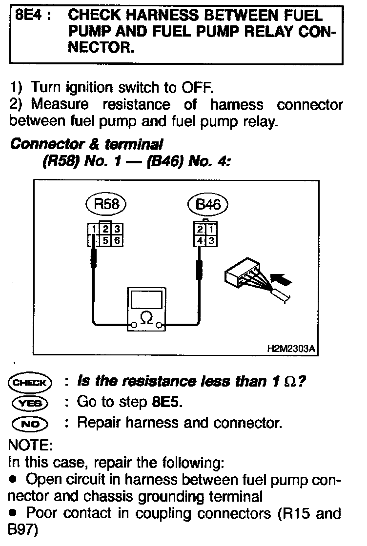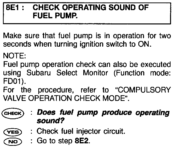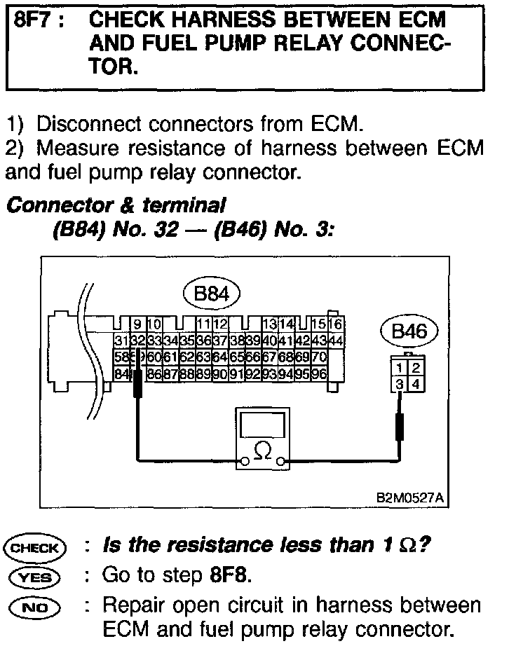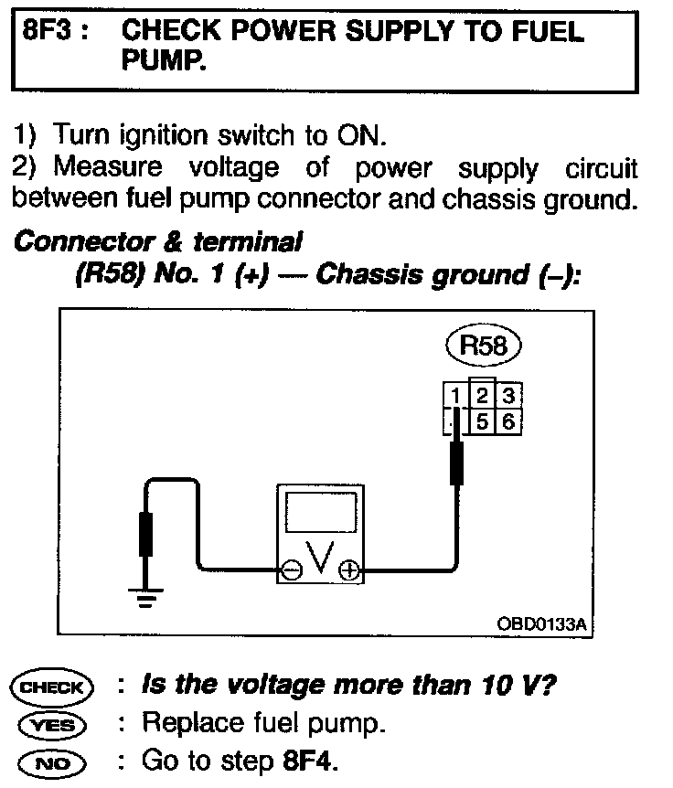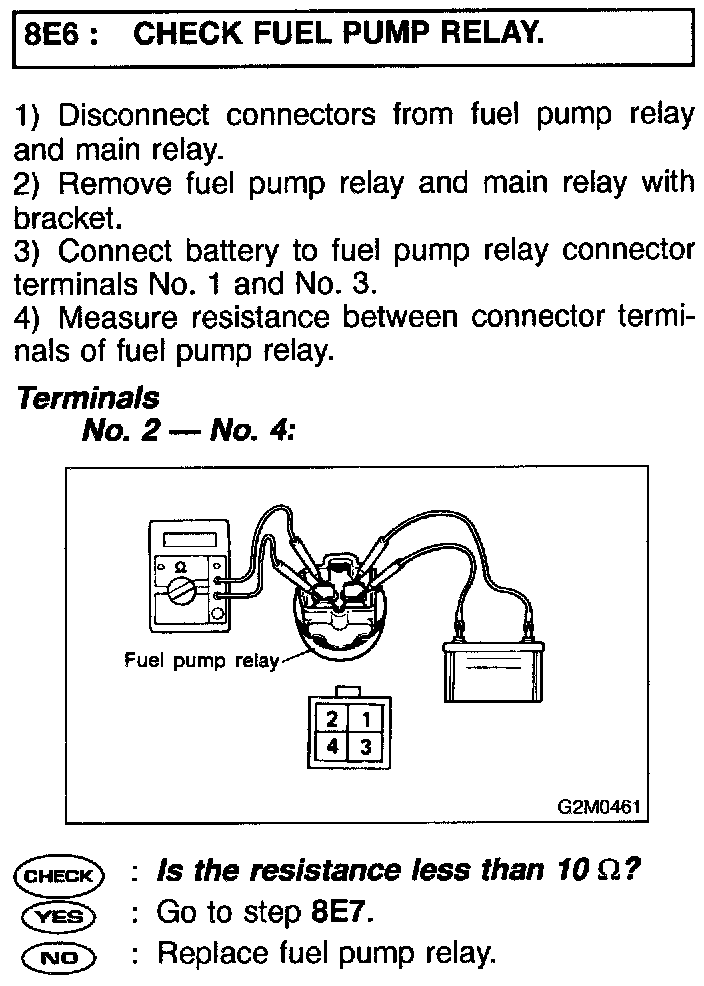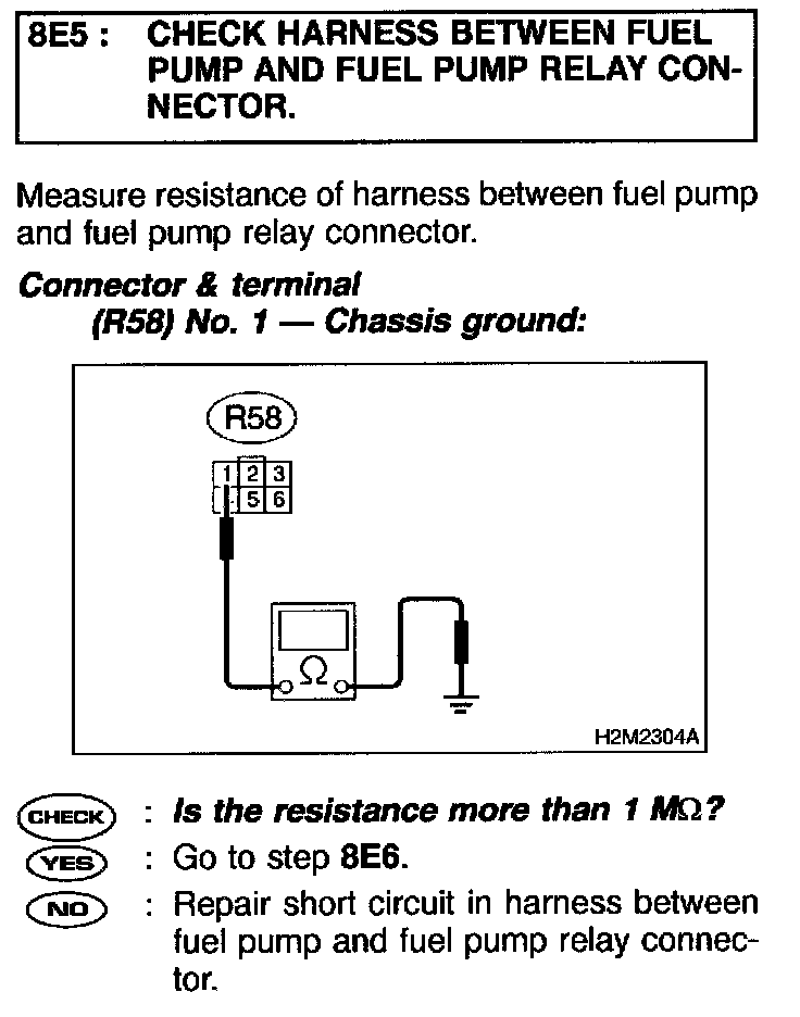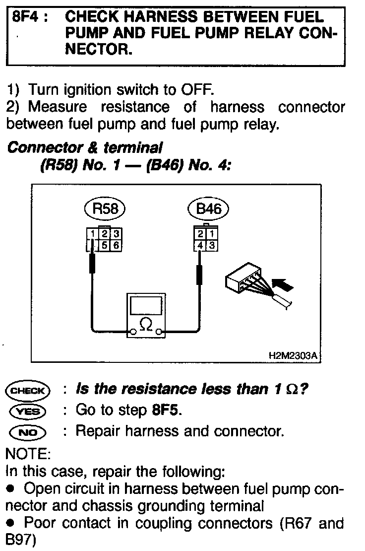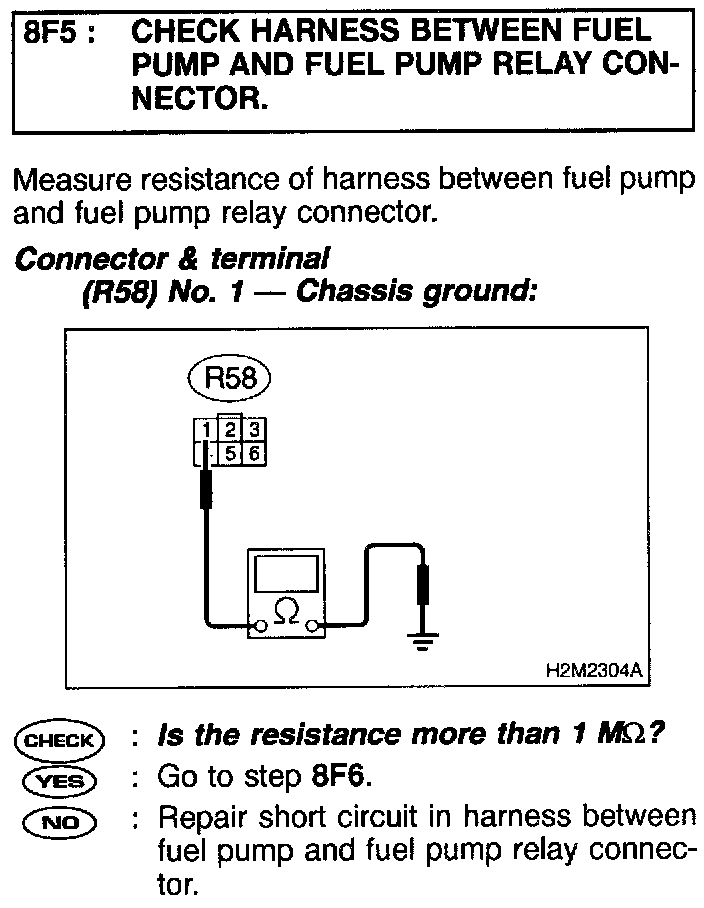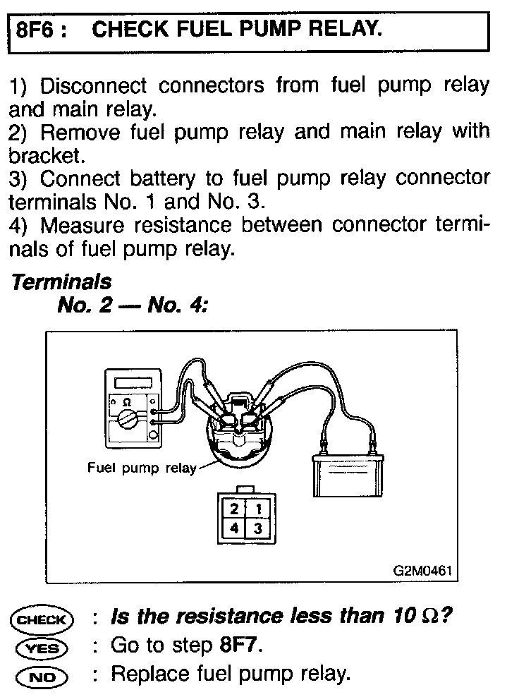 FUEL PUMP CIRCUIT (2500 cc VEHICLES)