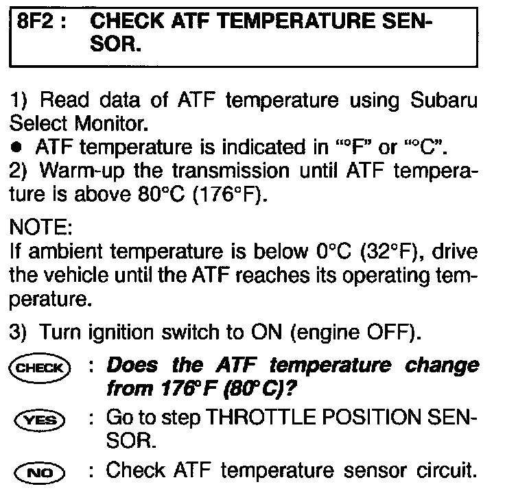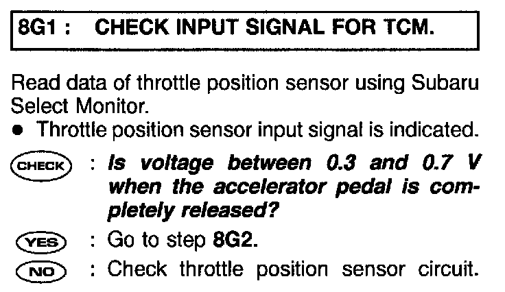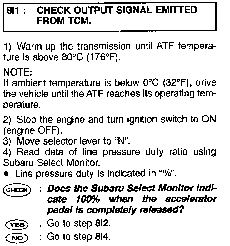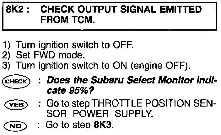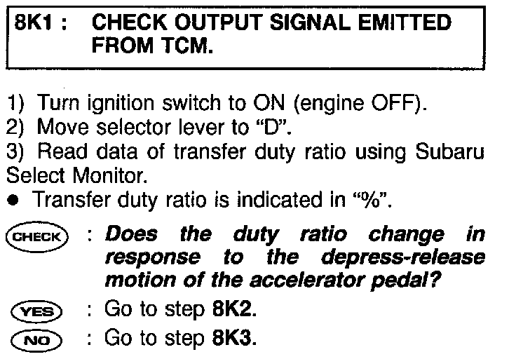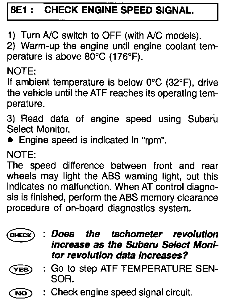 BASIC DIAGNOSTIC CHARTIf no trouble codes appear in the on-board diagnostics operation (although problems have occurred or are occurring), measure performance characteristics of sensors, actuators, etc., in the Subaru Select Monitor and compare with the "basic data" to determine the cause of problems.