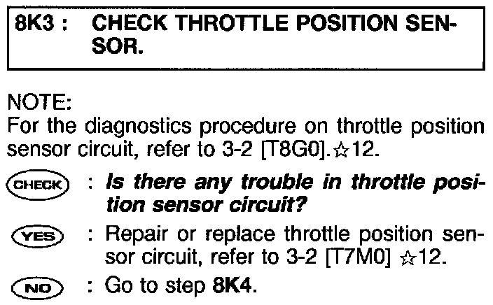 CHECK THROTTLE POSITION SENSOR POWER SUPPLY.
