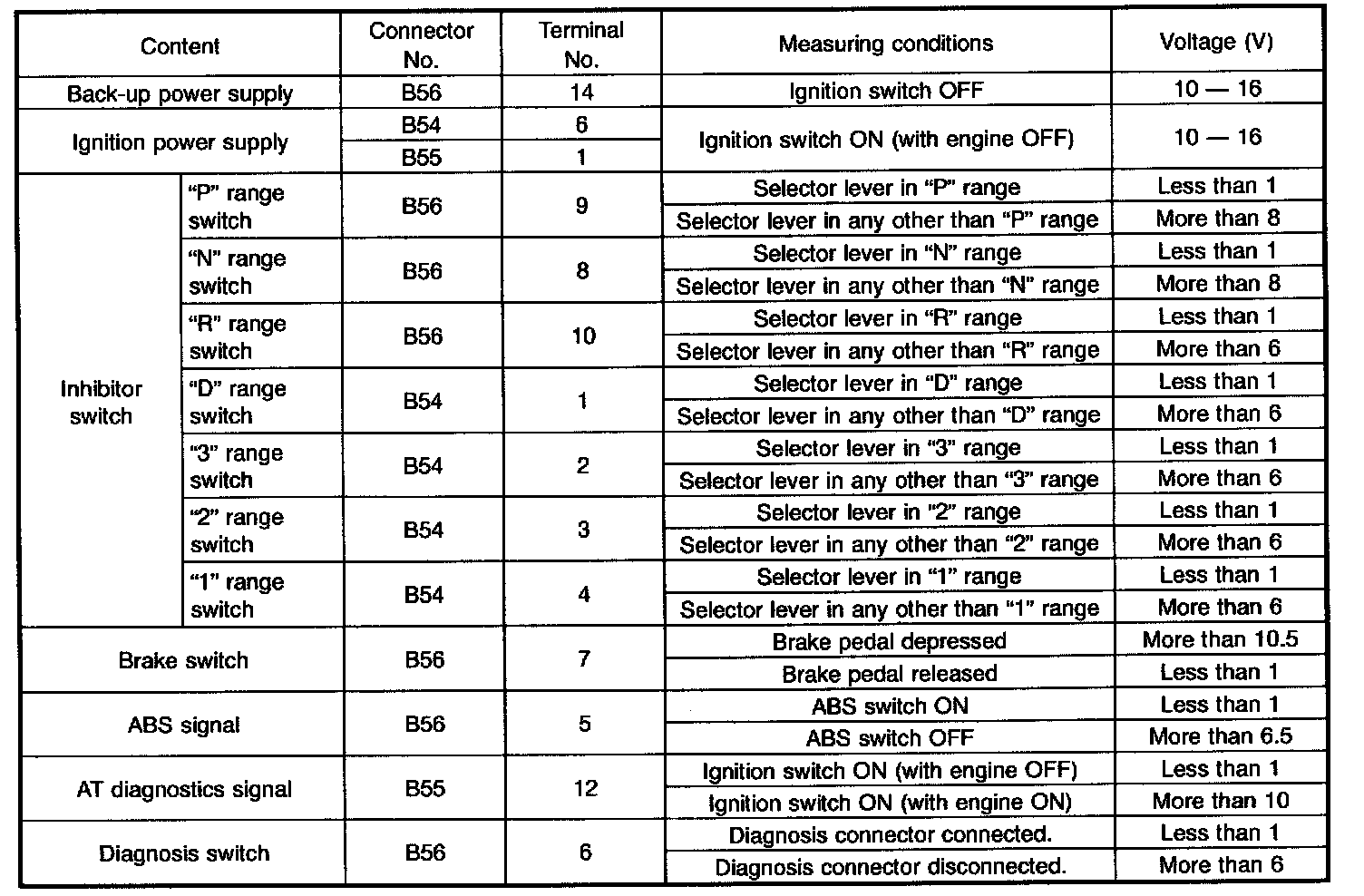 TRANSMISSION CONTROL MODULE (TCM) I/O SIGNAL