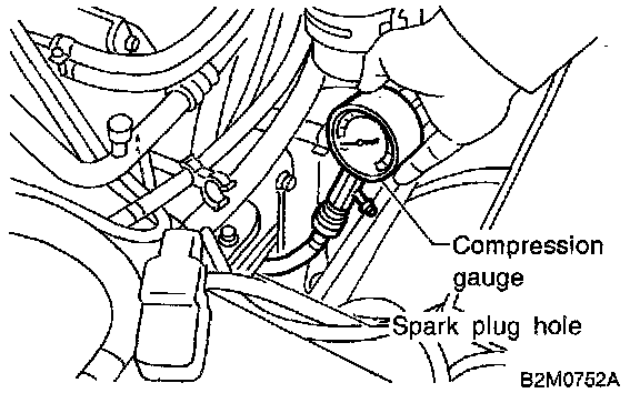 8) Crank the engine by means of the starter motor, and read the maximum value on the gauge when the pointer is steady.