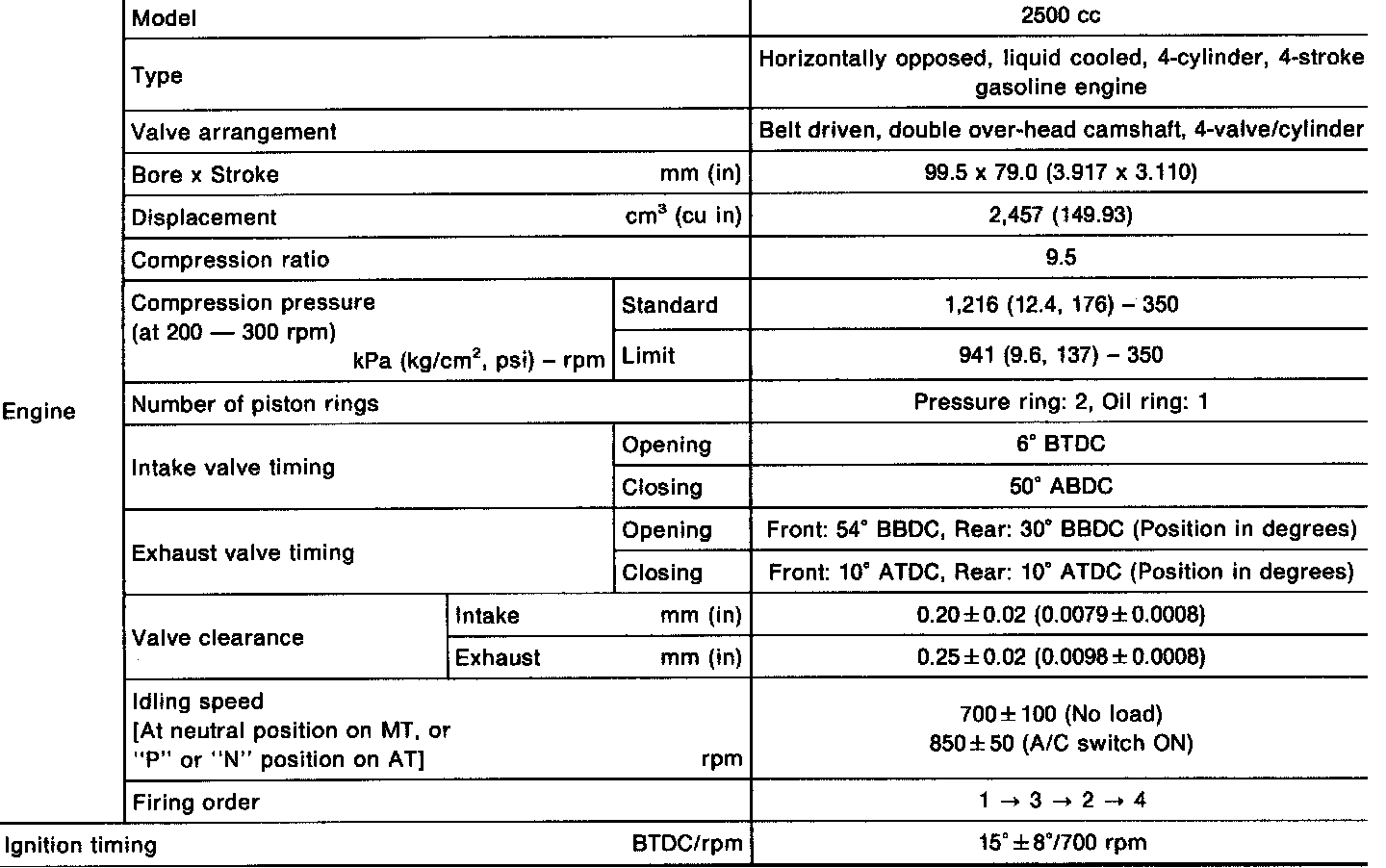 Legacy Outback AWD F4-2.5L DOHC