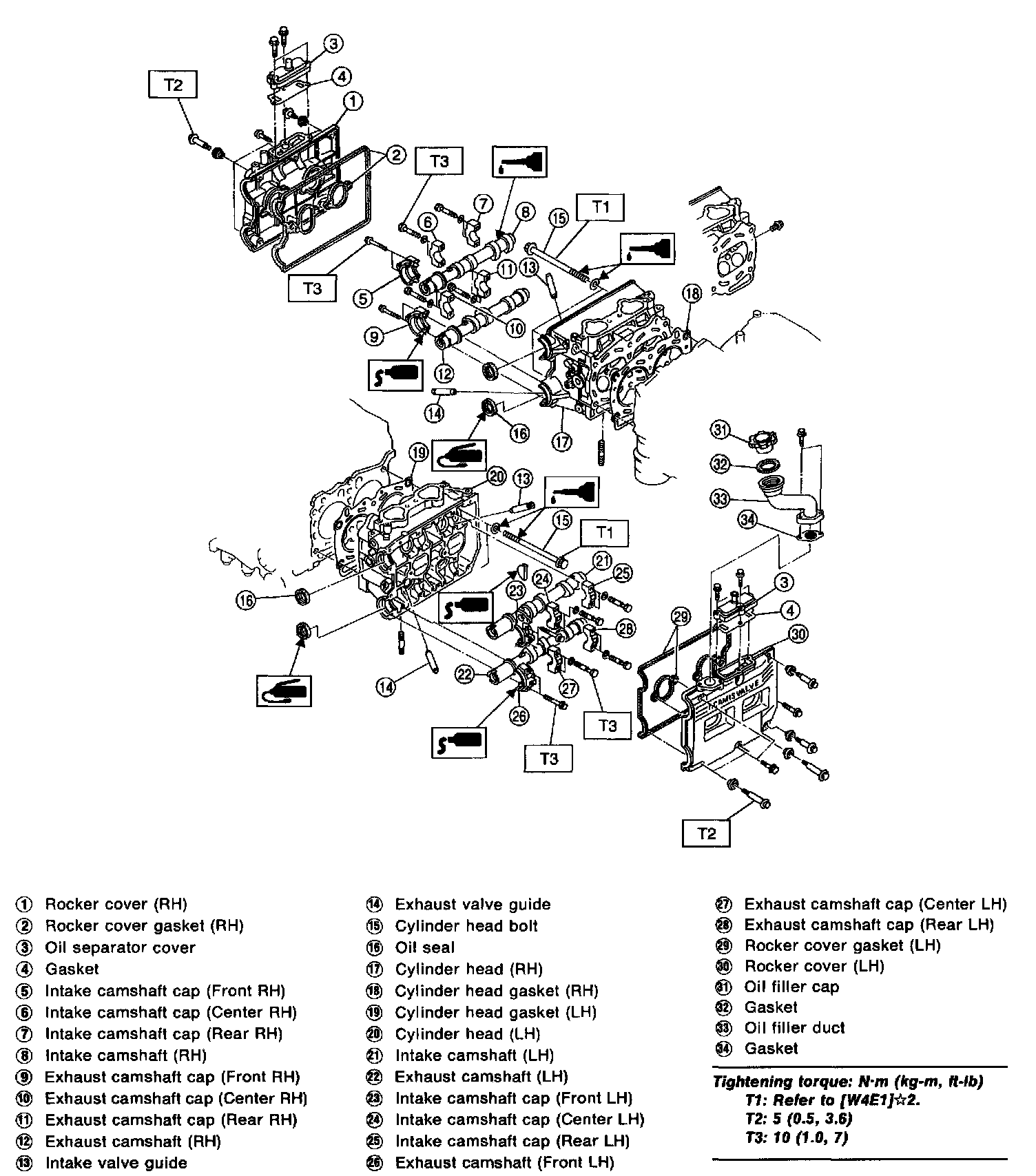 (1) Apply a coat of engine oil to washers and bolt threads.