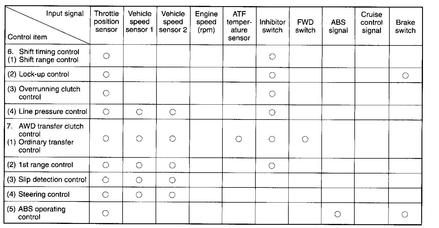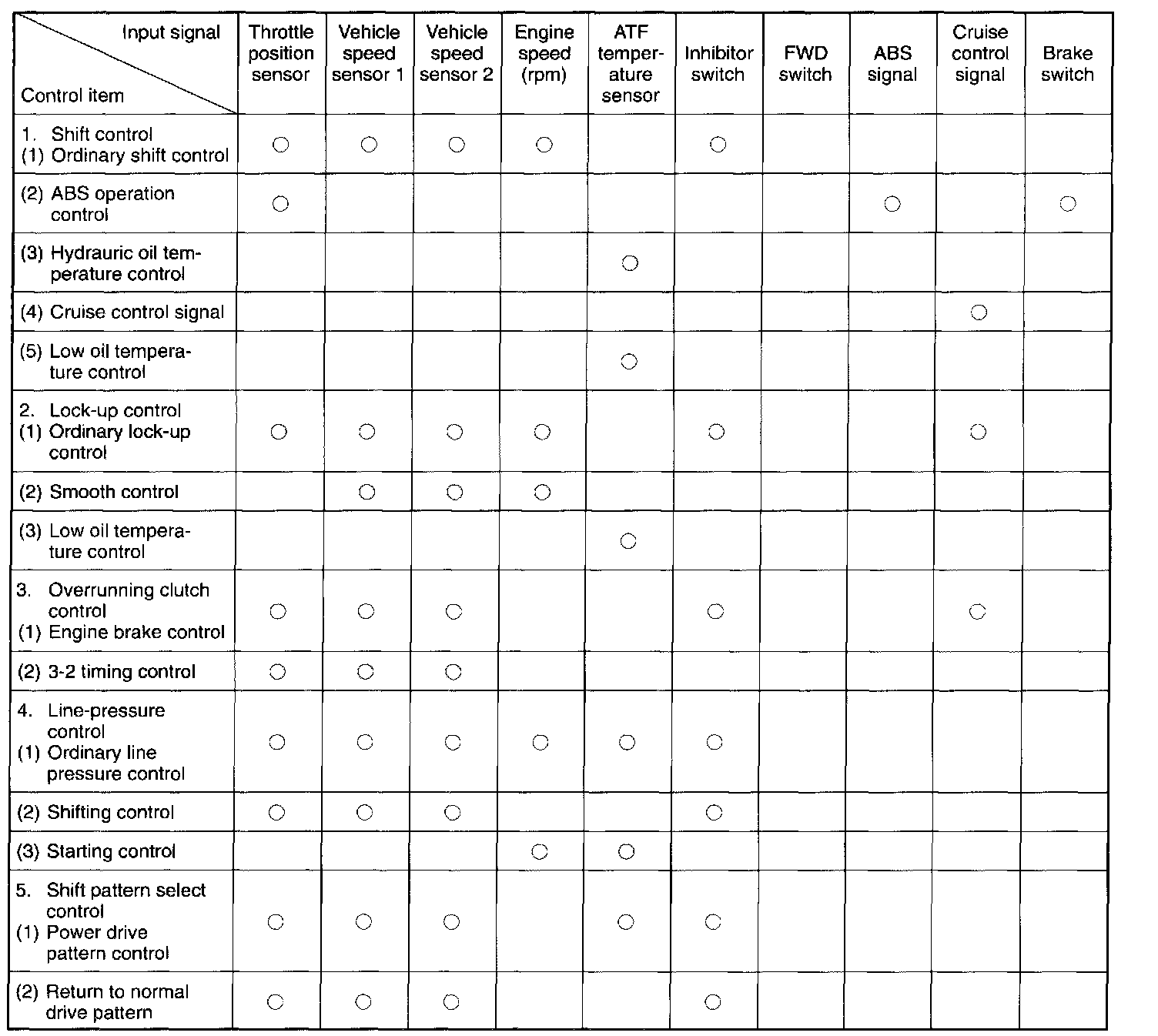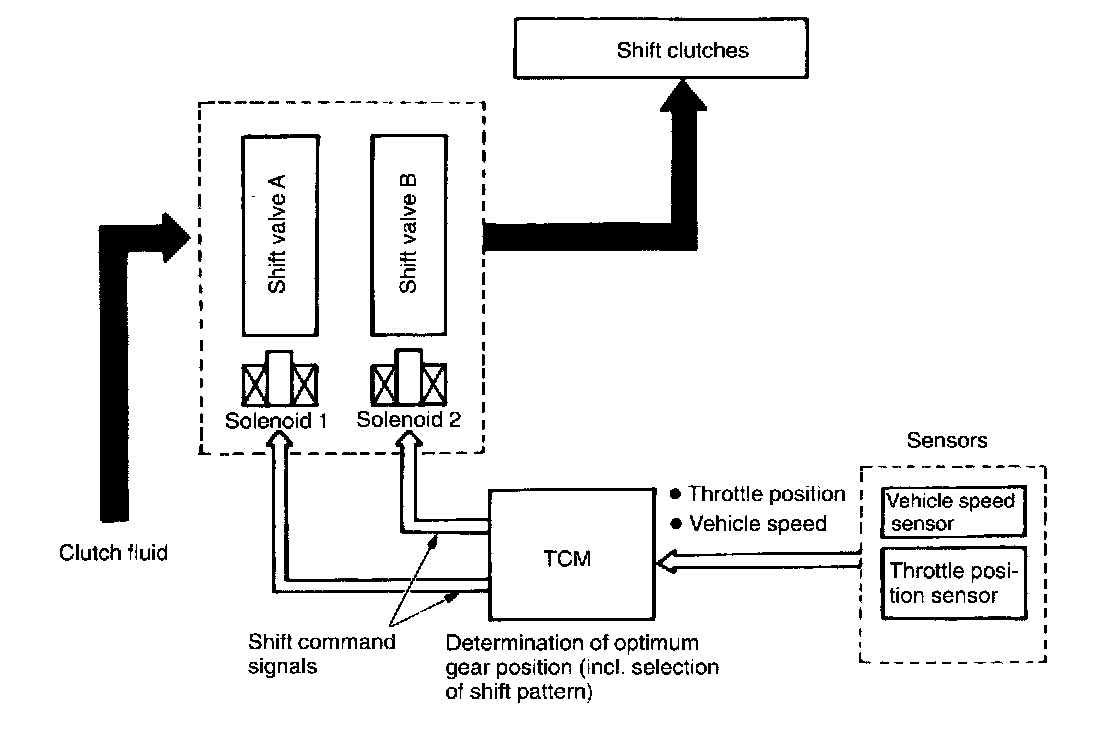 The TCM controls the shift solenoid corresponding to such input signals as throttle position, vehicle speed, shift range, and cruise control signals to automatically control the operation of the overrunning clutch and for positive application of engine brake.