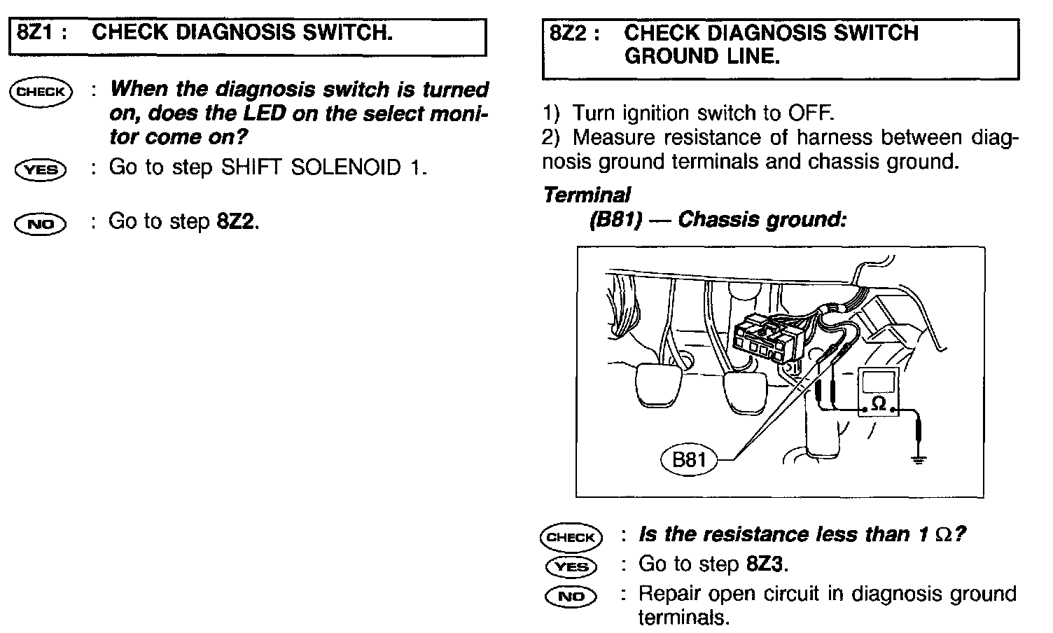 CHECK HOLD SWITCH. (DIAGNOSTIC SWITCH)