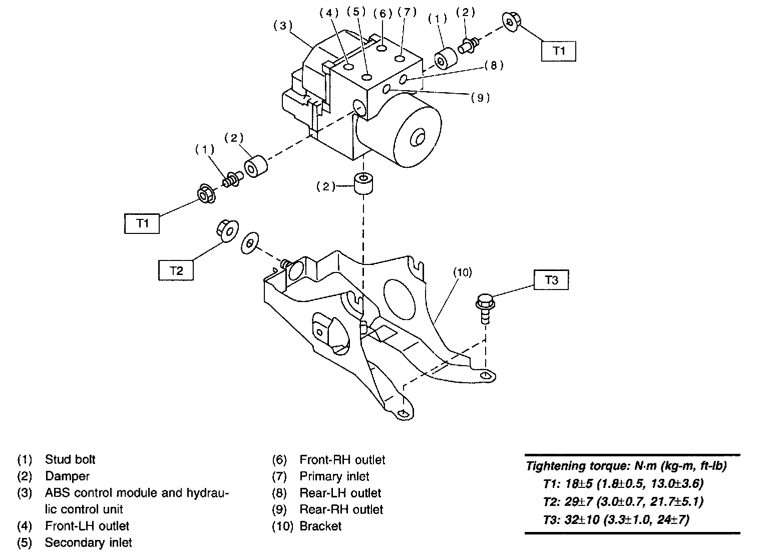 1. Under the Anti-lock Brake System (ABS) sequence control, after the hydraulic unit solenoid valve is driven, the operation of the hydraulic unit can be checked by means of the brake tester or pressure gauge.