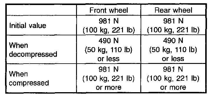 1. When using the brake tester, depress brake pedal with braking force of 981 N (100 kg, 221 lb).