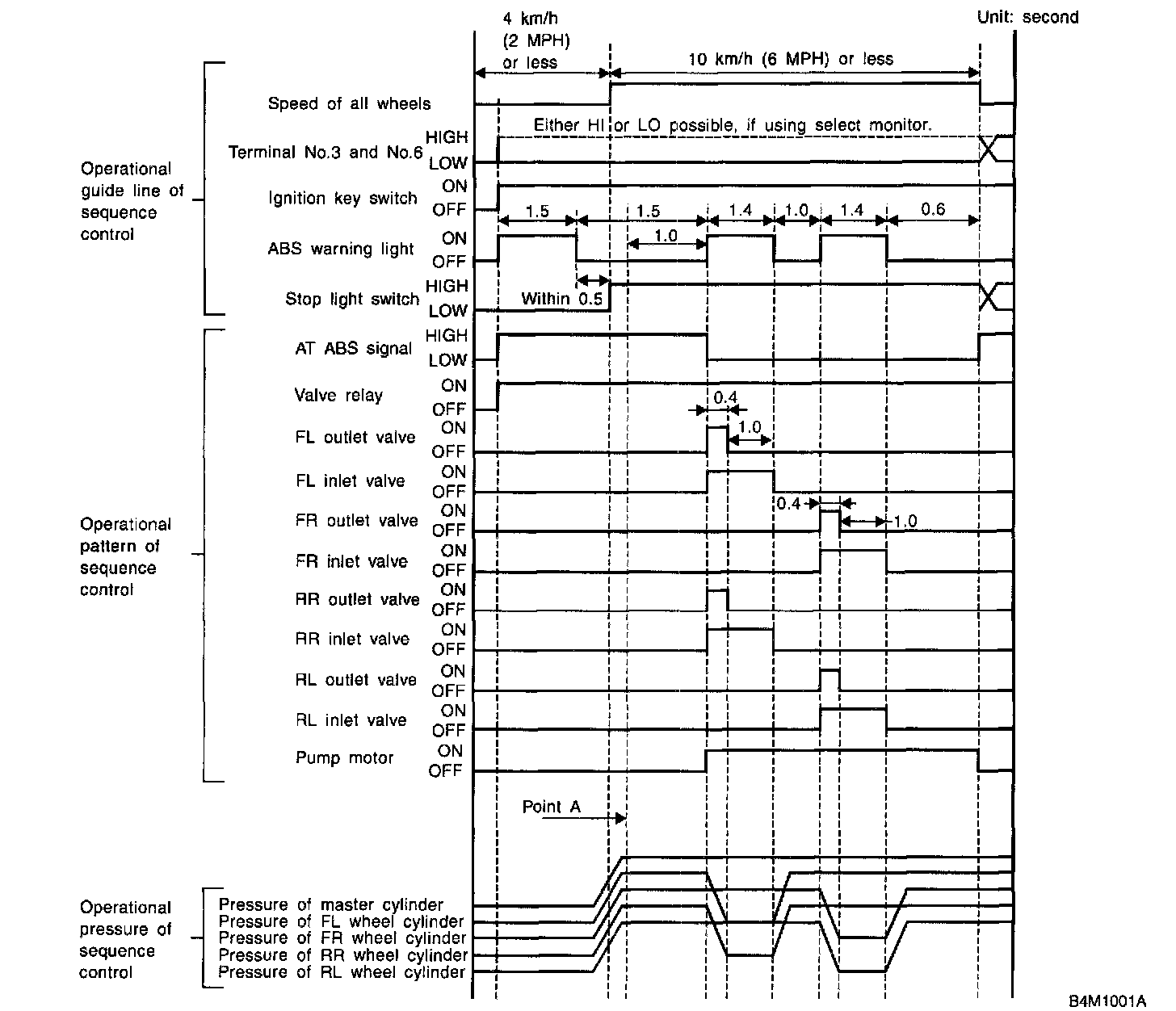 ^ In the event of any trouble, the sequence control may not be operative. In such a case, activate the sequence control, referring to "OPERATIONAL GUIDELINES OF THE ABS SEQUENCE CONTROL WITH DIAGNOSIS CONNECTOR".