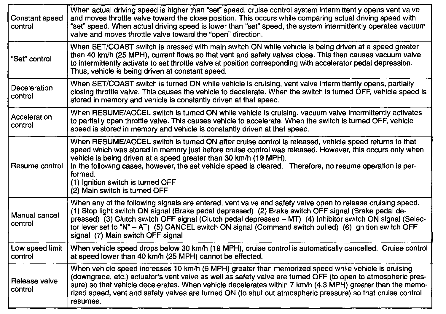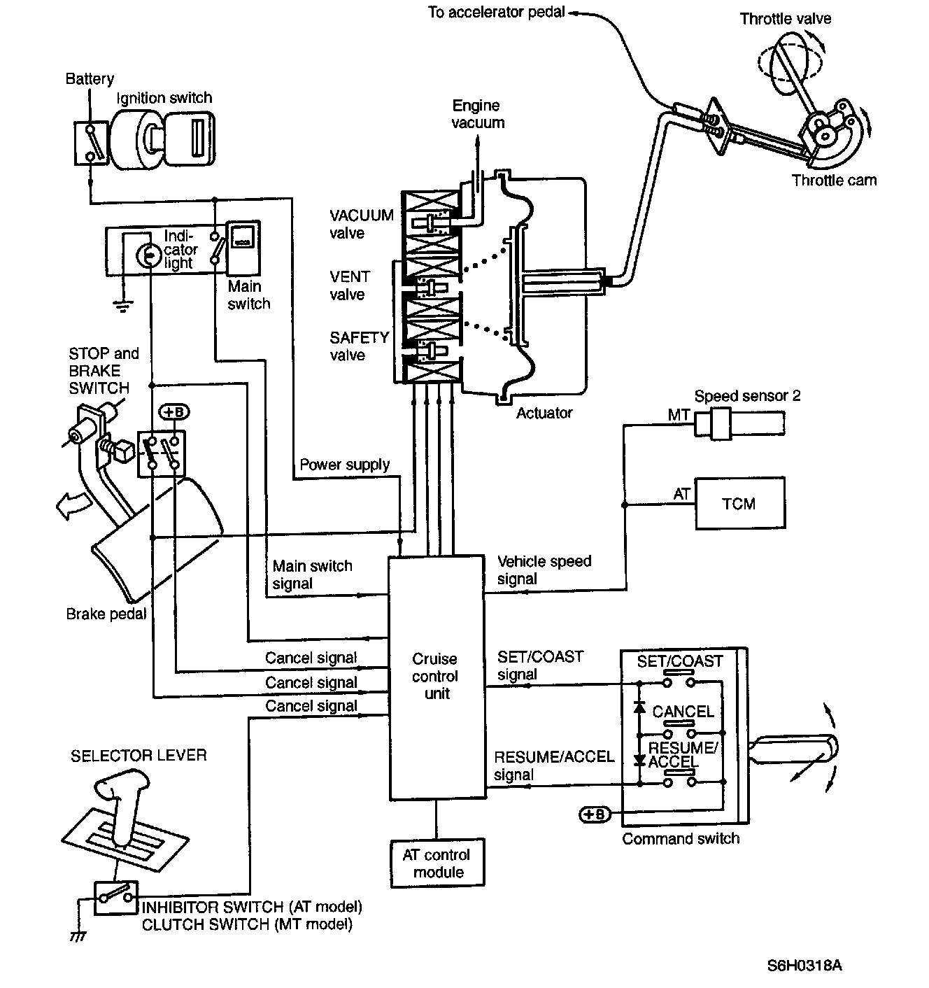 - The cruise control module compares the actual vehicle speed detected by feedback signals from the speed sensor 2 (MI) or 1CM (AT) with the speed set in the memory memorized when the set switch was turned on.