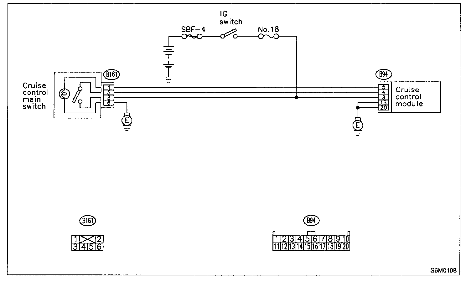 Connector & Terminal: (B161) No. 6 (+) - Chassis Ground (-):