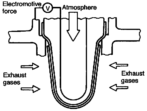 - When a lean air-fuel mixture is burnt in the cylinder, oxygen remains in the exhaust gases even after the catalytic action, and this results in a small difference in the oxygen concentration. The electromotive force is very small.