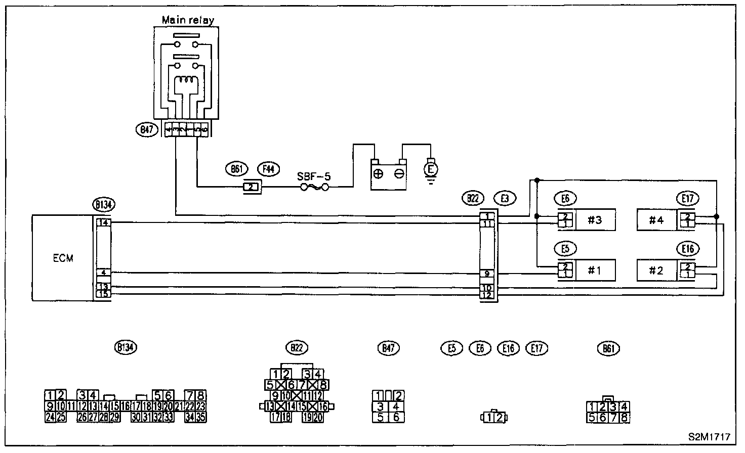 Connector & Terminal #1 (B134) No.4 - (E5) No.1 #2 (B134) No.13 - (E16) No.1 #3 (B134) No.14 - (E6) No.1 #4 (B134) No.15- (E17) No.1: