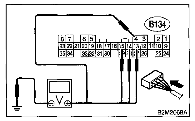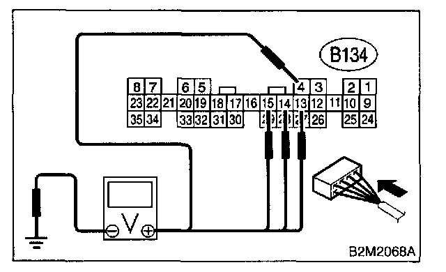 Connector & Terminal #1 (B134) No.4 (+) - Chassis Ground (-) #2 (EB134) No.13 (+) - Chassis Ground (-) #3 (134) No.14 (+) - Chassis Ground (-) #4 (B134) No.15 (+) - Chassis Ground (-):