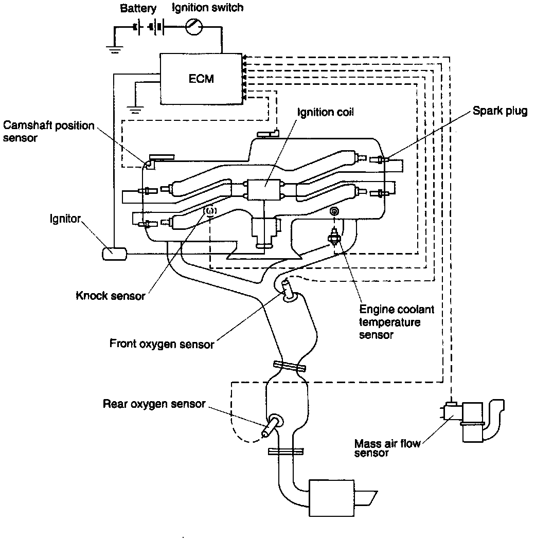 The ECM determines the optimal ignition timing according to signals sent from various sensors (which monitor the operating conditions of the engine), and sends a signal to the ignitor.